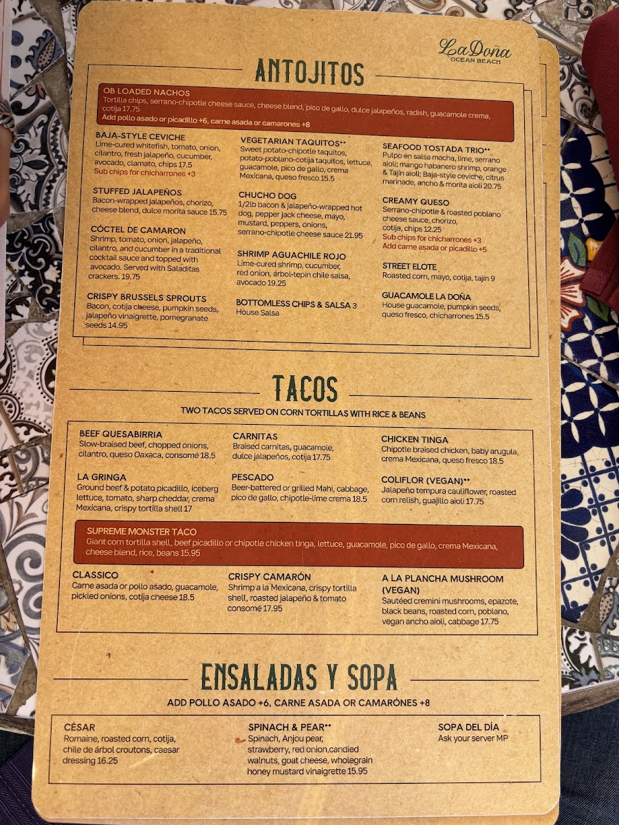 If you find yourself wandering the vibrant streets of Ocean Beach, San Diego, don't miss the culinary treasure that is La Doña. This delightful Mexican restaurant, nestled at 1852 Bacon St, captures the essence of authentic Mexican dining while embracing the laid-back charm of its seaside location.